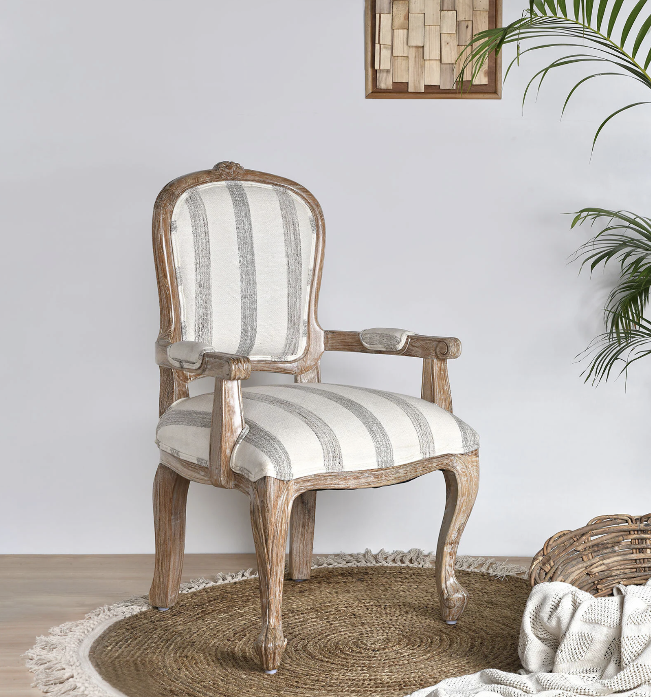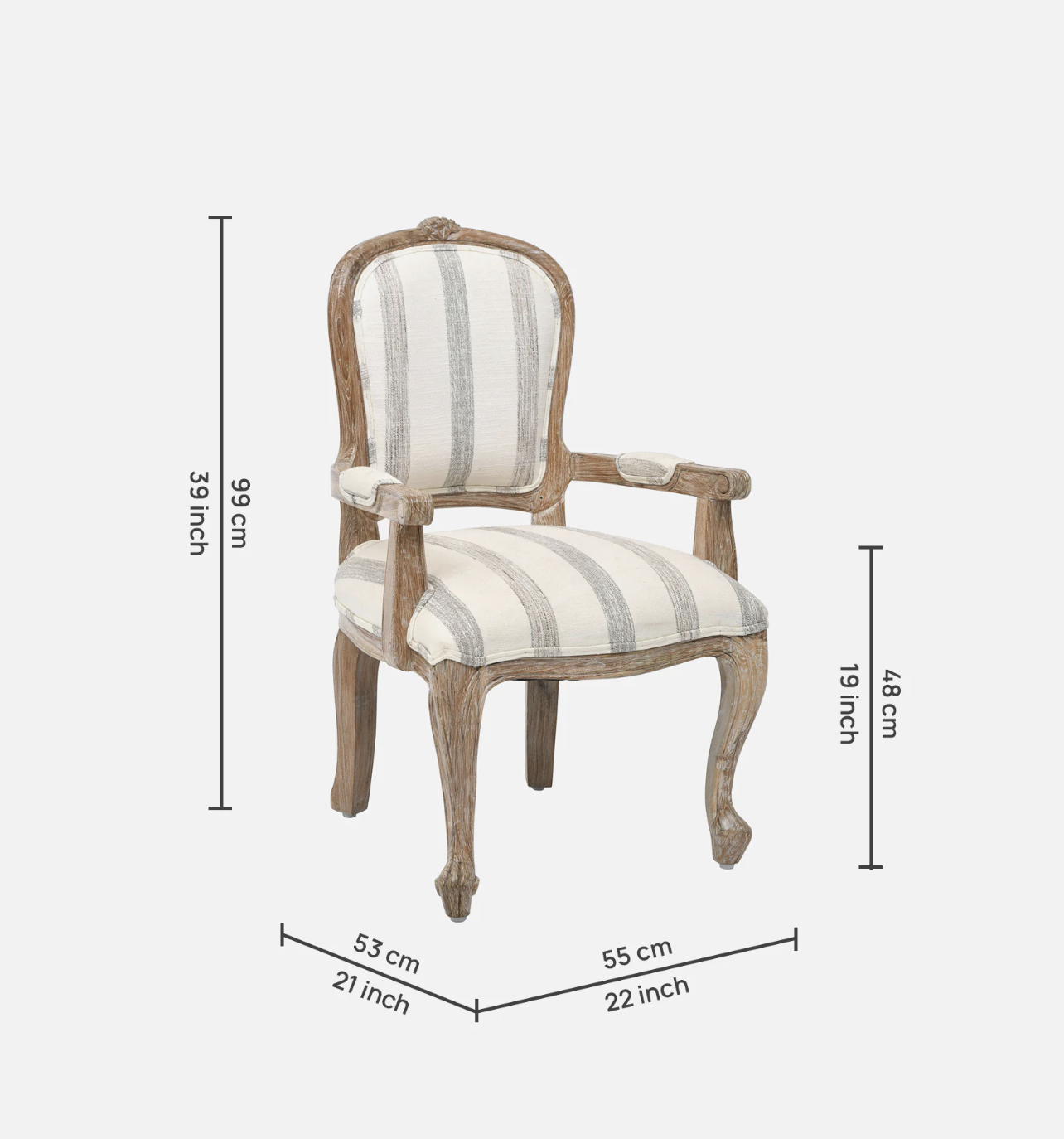 Bring rustic charm to your home with this solid wooden armchair, expertly crafted from sturdy mango wood. The distressed white finish adds a touch of vintage appeal, making it a perfect addition to both modern and traditional interiors. The armrests offer additional comfort, while the durable construction ensures it stands the test of time. Whether placed in a living room, dining room, or patio, this armchair enhances the aesthetic of any space with its unique blend of style and functionality.