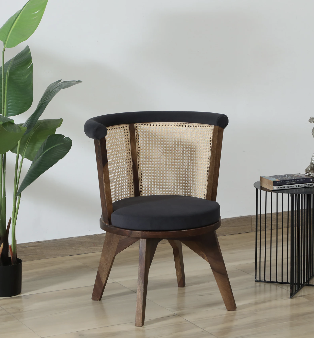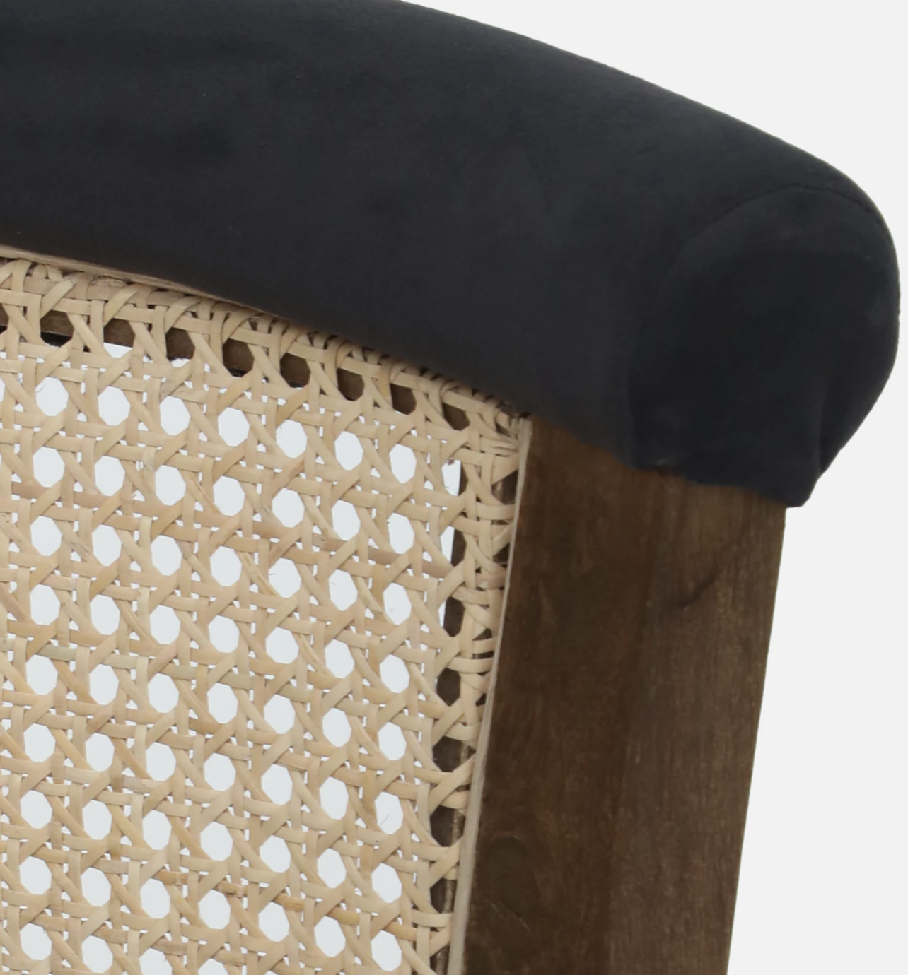 Introducing the Foster Solid Wood Armchair, crafted from durable mango wood and featuring a stunning walnut finish. This chair showcases a stylish cane mesh backrest, adding a touch of elegance With plush velvet fabric seating, it offers exceptional comfort for long hours spent in your cafe or dining area. Measuring 61 cm wide, 56 cm deep, and 80 cm high, this armchair is designed to fit seamlessly into any space. Elevate your seating experience with the Foster armchair, where style meets comfort in a delightful design. Discover the perfect blend of functionality and aesthetic appeal for your home or cafe!